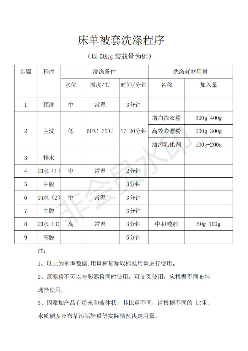 4、過水不清,常此以往,殘留氯水使織物泛黃。